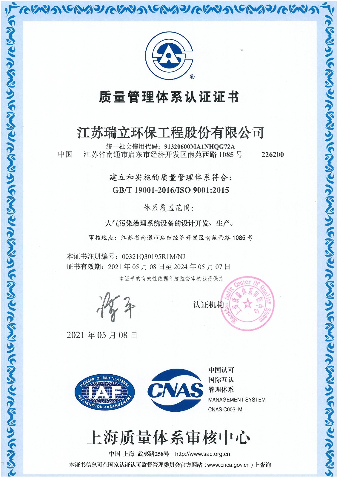 江蘇瑞立環(huán)保工程股份有限公司(原江蘇瑞帆環(huán)保工程股份有限公司),成立于2017年3月,注冊(cè)資金2000萬元,坐落于江蘇省啟東經(jīng)濟(jì)開發(fā)區(qū)南苑西路1085號(hào),為省高新技術(shù)企業(yè)、省民營科技企業(yè)、省科技型中小企業(yè)。公司是專業(yè)從事大氣污染治理設(shè)備設(shè)計(jì)、研發(fā)、生產(chǎn)、安裝、銷售、服務(wù)于一體的新型環(huán)保企業(yè)。是由江蘇瑞帆環(huán)保裝備股份有限公司(瑞帆環(huán)保)和自然人共同發(fā)起投資成立的股份有限公司,其主營環(huán)境污染治理工程、機(jī)電設(shè)備安裝工程、土壤修復(fù)工程施工;制造、銷售大氣污染協(xié)同治理系統(tǒng)設(shè)備、高爐煤氣干法除塵設(shè)備、焦?fàn)t煤氣凈化處理設(shè)備、大型耐高溫、耐酸袋式除塵設(shè)備、工業(yè)鍋爐煙氣脫硫脫硝設(shè)備、垃圾焚燒處理設(shè)備;環(huán)境污染治理及監(jiān)測技術(shù)的研發(fā)、技術(shù)咨詢、技術(shù)服務(wù);合同能源管理。公司產(chǎn)品主要用于冶金 、電力 、建材 、化工 、垃圾焚燒等行業(yè)的煙氣治理;公司還積極開拓服務(wù)領(lǐng)域及海外市場,分別成立了鄆城縣綠維、曹縣蔚藍(lán)、南安市瑞立、莆田市瑞立、漳浦縣瑞立、淮安市瑞立、慶陽蔚藍(lán)等7家全資子公司承擔(dān)福建圣元環(huán)保股份有限公司的7家垃圾焚燒發(fā)電子公司的污染治理第三方運(yùn)營服務(wù)的業(yè)務(wù),公司部...